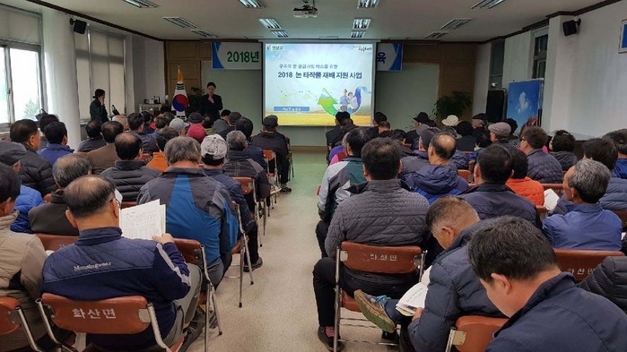 이에 따라 군은 사업 확대를 위해 지난 14일부터 읍면 순회교육을 실시하고 벼 재배 대비 타작목별 소득 분석자료 등을 설명하며 논 타작물 재배사업에 대한 농업인들의 건의와 애로사항을 청취하고 있다.