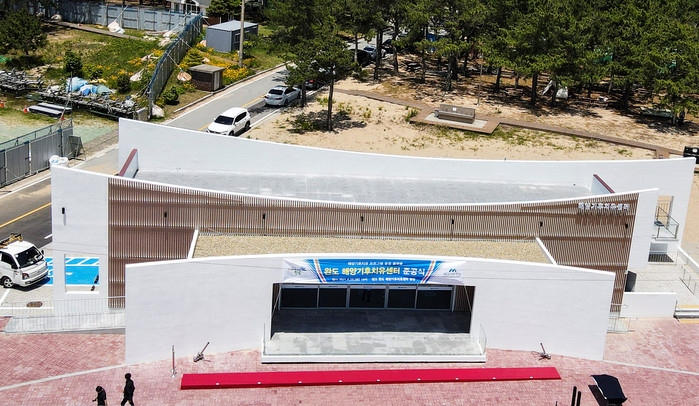 12억 원의 예산을 투입, 지난해 9월 착공해 6개월 만에 공사를 마무리한 해양기후치유센터는 지상 1층, 연면적 371㎡ 규모로 신지 명사십리의 청정 환경과 기후를 활용하는 해변 노르딕워킹, 요가 등 다양하고 맞춤형 해양치유 프로그램 운영을 위한 공간으로 운영된다.
