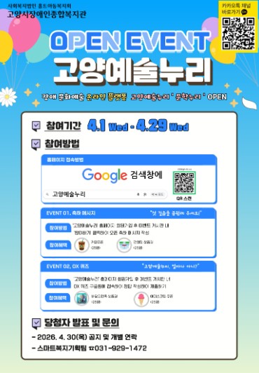 고양시장애인종합복지관은 플랫폼 이용자를 늘리고 전시를 활성화시키기 위해 4월 1일부터 29일까지 다양한 이벤트를 실시하고 이벤트 참여자 중 추첨을 통해 다양한 기프티콘을 제공할 예정이다. 당첨자 발표는 4월 30일 플랫폼을 통해 발표한다.