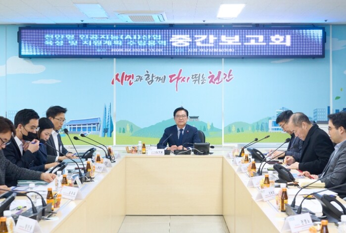 천안시는 5일 시청 재난상황실에서 ‘천안형 인공지능(AI) 산업 육성 및 지원계획 수립용역’ 중간보고회를 개최했다.