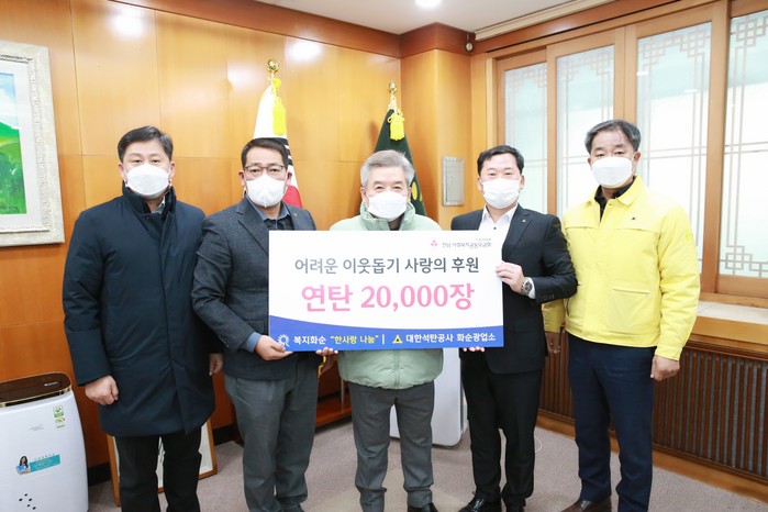 화순광업소는 2018년부터 겨울철 에너지 취약계층을 위해 매년 연탄 2만 장씩을 기부해 왔다.연탄은 취약계층 1가구당 250장씩 총 80가구에 쿠폰으로 전달할 예정이다.