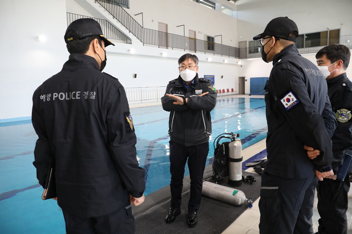 ▲김종욱 서해지방해양경찰청장은 20일 목포시 죽교동에 있는 서해해경청 특공대를 방문해 현장세력 대응태세를 점검하고 있다. (사진=서해지방해양경찰청) |
