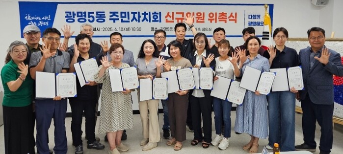 이번에 19명의 신규 위원이 추가로 위촉되면서 광명5동 주민자치회는 총 41명으로 구성됐다. 이들은 임기 동안 ▲마을 의제 발굴과 계획 수립 ▲주민총회 개최 ▲주민자치회 활성화 사업 등 다양한 활동으로 주민을 대표하고, 행복하고 살기 좋은 마을 만들기에 앞장설 예정이다.