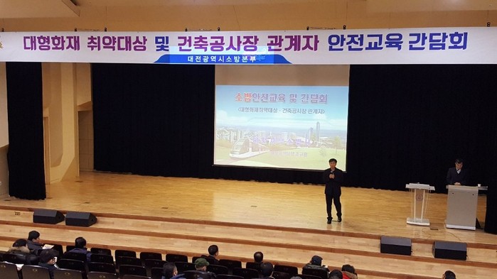 [세계로컬신문 오영균 기자]대전소방본부는 24일 오후 한남대 서의필 홀에서 대형화재 취약 대상 및 건축공사장 관계자 소방안전교육 및 간담회를 가졌다.