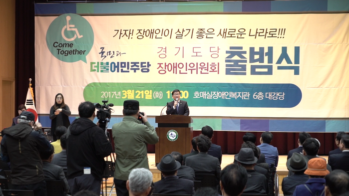 | ▲ 더불어민주당 경기도당 장애인위원회가 21일 호매실장애인복지관 6층 대강당에서 출범식을 진행하고 있다. |
