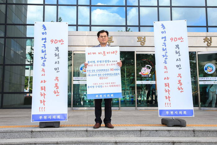 [세계로컬신문 유영재 기자] 경기도 부천시의회 도시교통위원회 이동현 위원장은 22일 12시부터 인천 부평구청 정문 앞에서 1인 시위를 벌였다.