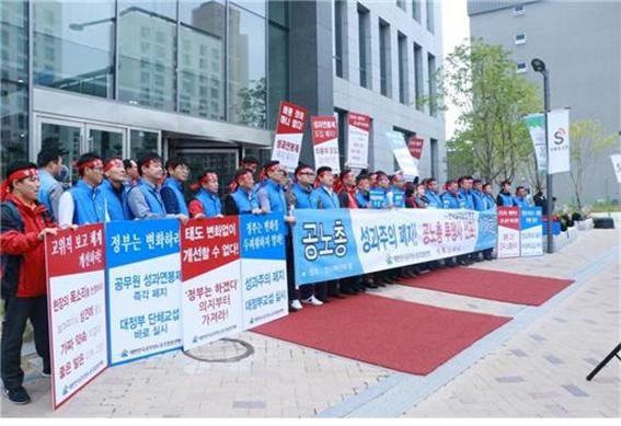 대전공노조와 광역연맹, 공노총은 공직사회 개혁을 위해 반드시 선행돼야 할 과제가 ‘공무원 성과연봉제 폐지’임을 밝히고 지난 여름부터 국민을 위해 공공서비스 질을 향상시키기 위해 투쟁을 지속해왔다.