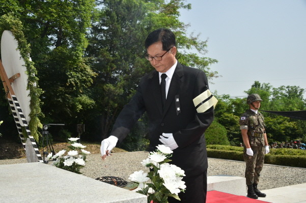 [세계로컬신문 고성철 기자] 경기도 남양주시가 제63회 현충일을 맞아 6일 오전 10시 현충탑에서 지성군 남양주시부시장(남양주시장 권한대행)을 비롯한 보훈단체장과 국회의원, 각급 기관·단체장, 유가족, 시민 등 1000여명이 참석한 가운데 조국 수호를 위해 희생한 순국선열과 호국영령의 넋을 위로하기 위한 추념식을 가졌다.