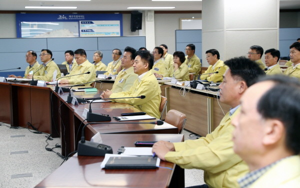 | ▲ 21일 제주도청서 을지연습 최초 상황 종합보고회를 열고 있다.<사진제공=제주도청> |