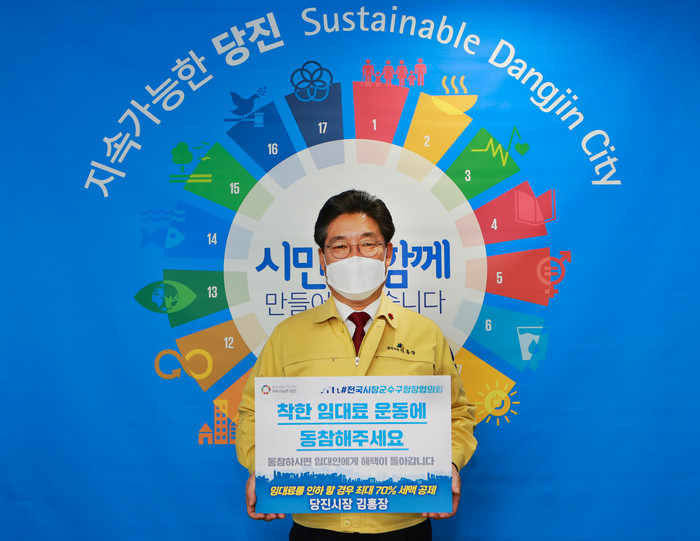 [세계로컬타임즈 홍윤표 조사위원] 김홍장 당진시장은 27일 코로나19로 어려움을 겪고 있는 소상공인 자영업자들을 위해 착한 임대료 지원정책을 한 목소리(One Voice)로 홍보하고 확산하는 #착지(着地)챌린지('착한임대료 지원정책'의 줄임말) 캠페인에 동참했다.