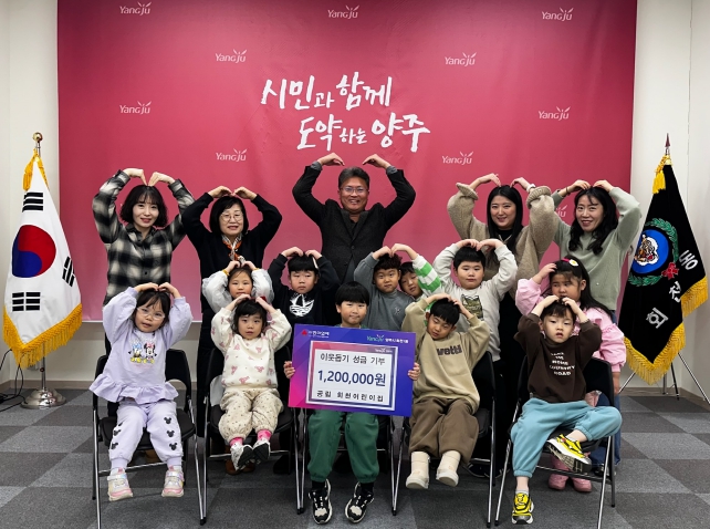 이번 성금은 지난 11월 1일 공립 회천어린이집에서 원아와 교직원이 참여해 진행한 ‘아나바다 불우이웃돕기 바자회’의 수익금 전액으로 마련됐다. 아이들의 참여로 모은 수익금을 지역사회에 환원했다는 점에서 의미를 더했다.