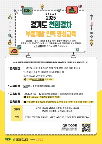 정한규 경기도 첨단모빌리티산업과장은 “미래 모빌리티 산업에서 부품기업의 친환경차 생태계 진입은 선택이 아닌 필수”라며 “2024년 교육 성과를 바탕으로 2025년에는 강화된 커리큘럼을 통해 기업과 재직자의 디지털 혁신 역량 향상에 집중하겠다”고 밝혔다.