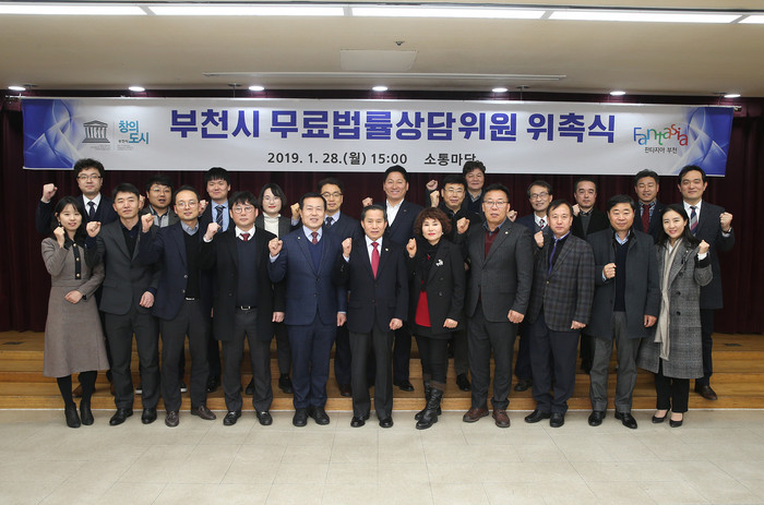 29일 부천시에 따르면 지난 28일 시청 소통마당에서 무료법률상담위원 30명을 위촉했으며, 상담위원은 인천지방변호사회·부천세무사회·한국공인노무사회 부천분회·부천지역 건축사회·한국공인중개사협회 부천지회에서 추천받은 변호사·세무사·노무사·건축사·공인중개사로 구성돼 있다. 임기 2년 동안 시민들을 위한 무료 법률자문을 제공하게 된다.