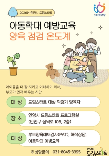 한편, 안양시 드림스타트는 취약계층 아동과 가족을 대상으로 ▲건강 ▲교육 ▲정서 ▲부모 교육 등 통합 서비스를 제공하는 사업으로, 시는 아동의 권리 보호와 건강한 성장 환경 조성을 위한 예방 중심 사업을 지속 추진할 계획이다.