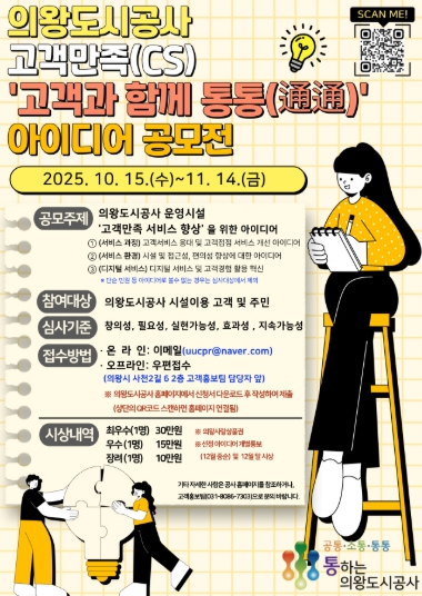 공모전은 10월 15일부터 11월 14일까지 4주 동안 진행되며, 의왕도시공사 시설을 이용하는 고객 및 의왕시민 누구나 참여할 수 있다.