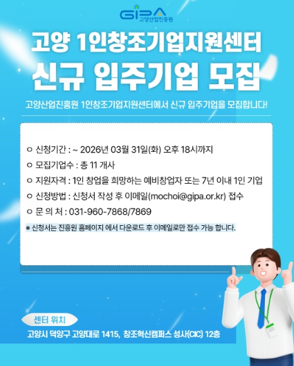신청은 오는 3월 31일 오후 6시까지 이메일 접수로 진행되며, 이후 서류평가와 발표평가를 거쳐 최종 입주기업을 선정한다.