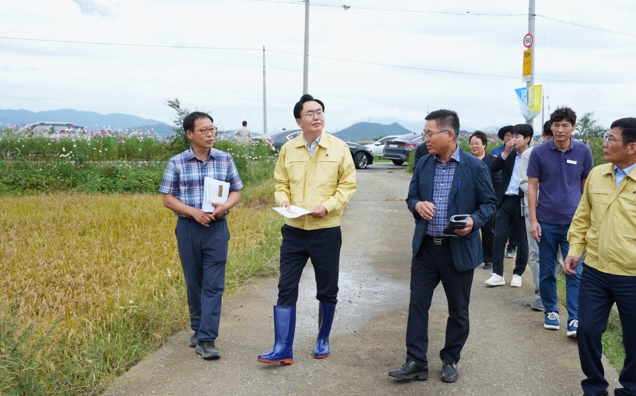 윤병태 시장은 10월 15일 반남면 덕산리 일대 피해 논을 방문해 현황을 점검하고 지역 농협 관계자들과 함께 병해 확산 원인을 살폈다.