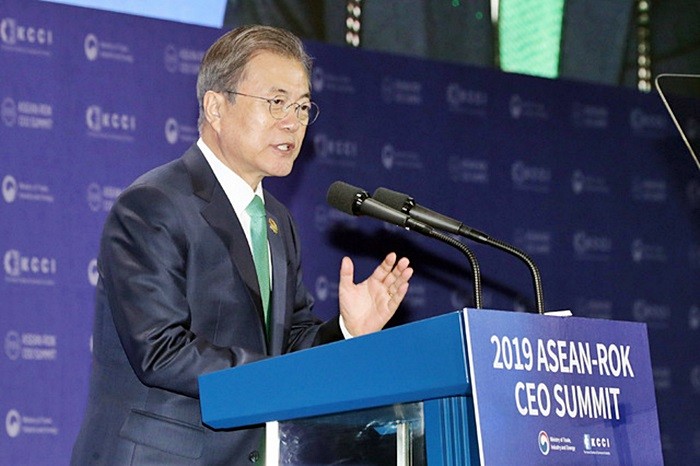 한편, 이날 행사에는 문재인 대통령 외에 쁘라윳 짠오차 태국 총리, 통룬 시술릿 라오스 총리, 조코 위도도 인도네시아 대통령, 마하티르 모하맛 말레이시아 총리, 아웅산 수지 미얀마 국가고문, 응우옌 쑤언 푹 베트남 총리 등 아세안 6개국 정상과 700여 명의 기업인이 참석했다.