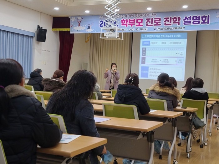 [세계로컬타임즈 강석운 기자]전라남도 화순교육지원청(교육장 이현희)은 11일과 18일 2회에 걸쳐 화순 관내 100여명의 초·중학교 학부모를 대상으로 ‘진로 아카데미’ 및 ‘진로·진학 설명회’를 실시했다.