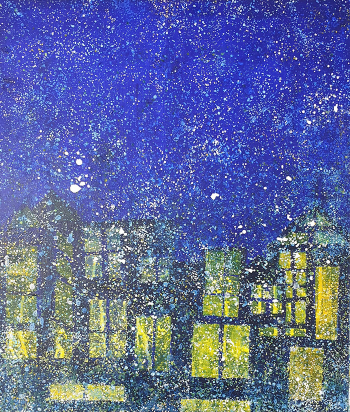 | ▲ 첫눈 오는 밤(72.7x60.6cm acrylic on canvas) ⓒ염선행 서양화가 |