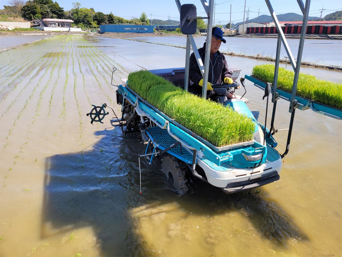 | ▲ 완도군이 명품 햅쌀 단지 65ha를 조성하고 조생종 신품종 벼 ‘조명 1호’ 이앙을 시작했다. (사진=완도군 제공) |