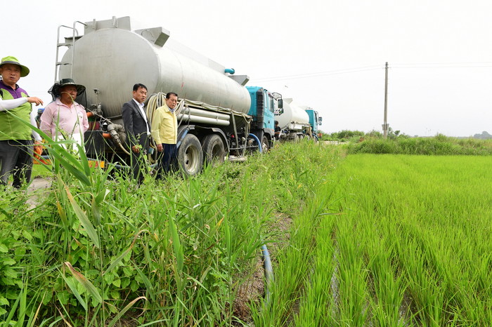 이에 지난 22일부터 급수차량(15t) 30대 등을 동원해 급수를 지원하고 있으며, 24일부터는 50대를 하루 약 8회 운영함으로써 1일 약 6천 톤의 급수를 지원하게 된다. 또한, 430개소의 공공관정도 전면 가동해 가뭄 피해를 최소화한다는 방침이다.