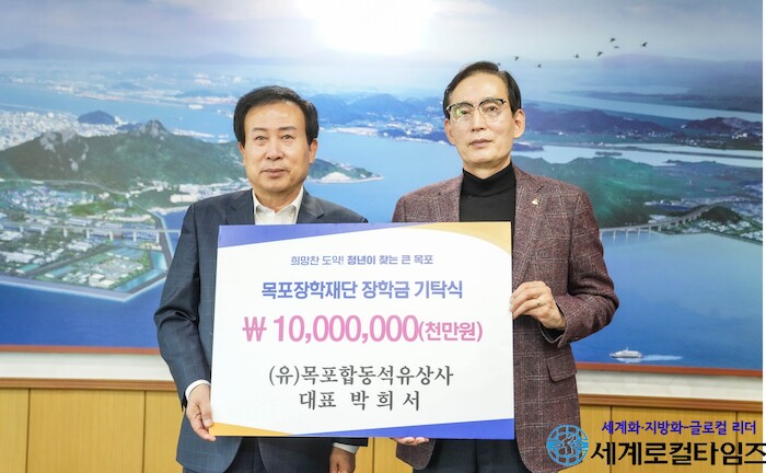 [세계로컬타임즈 김명진 기자] (유)목포합동석유상사 박희서 대표가 23일 목포장학재단(이사장 박홍률 목포시장)에 장학기금 1천만원을 기탁했다.