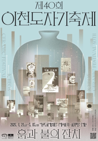 메인 포스터는 ‘40년의 흔적, 하나의 형태가 되다’라는 메시지를 담고 있다. 지난 40년간의 역대 축제 포스터를 층층이 쌓아 하나의 도자기 형상을 완성함으로써, 축제의 시간이 켜켜이 축적되어 오늘의 이천도자기축제와 ‘도자기=이천’이라는 도시 정체성이 형성됐음을 상징적으로 표현했다.