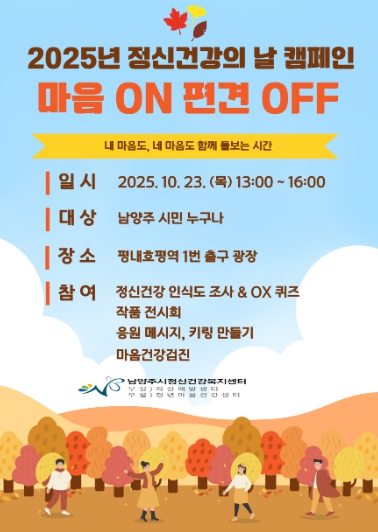 세계로컬타임즈 - 남양주시, ‘마음 ON, 편견 OFF’ 정신건강 인식개선 캠페인 개최