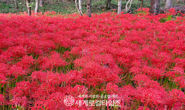 | ▲붉은 카펫, 상사화 군집 모습(사진=이남규 기자) |