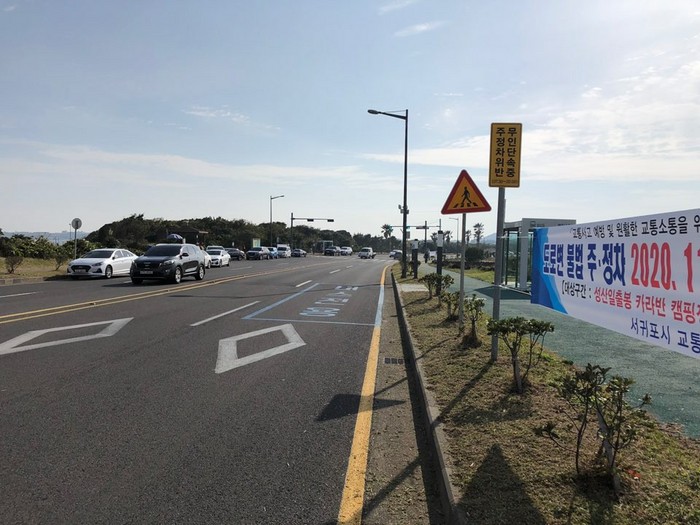 이에 따라, 세계유산본부에서는 성산읍 고성리 263번지 등 광치기 해변 인근에 78면과 223면의 공영주차장을 조성하여 이번달 24일부터 개방하고 서귀포시에서는 사업비 이천오백만을 투입하여 불법주정차 단속카메라를 설치하여 다음달 부터 불법주정차 단속을 실시한다.