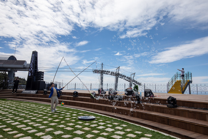 | ▲발왕산콘서트데크오픈행사 에서 비눗방울 공연을 하고 있다. |