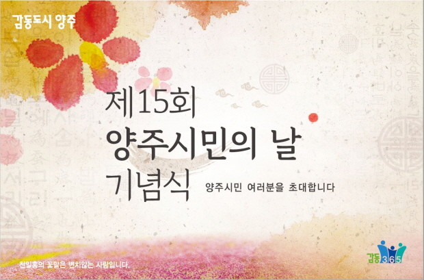 시 관계자는 “올해 시민의 날 기념식은 단순 기념식에서 벗어나 모든 시민들이 함께 참여하고 화합하는 경축의 한마당이 될 수 있도록 행사를 진행할 계획”이라며 “이번 기념식에 양주시민의 많은 관심과 참여를 바란다”고 말했다.