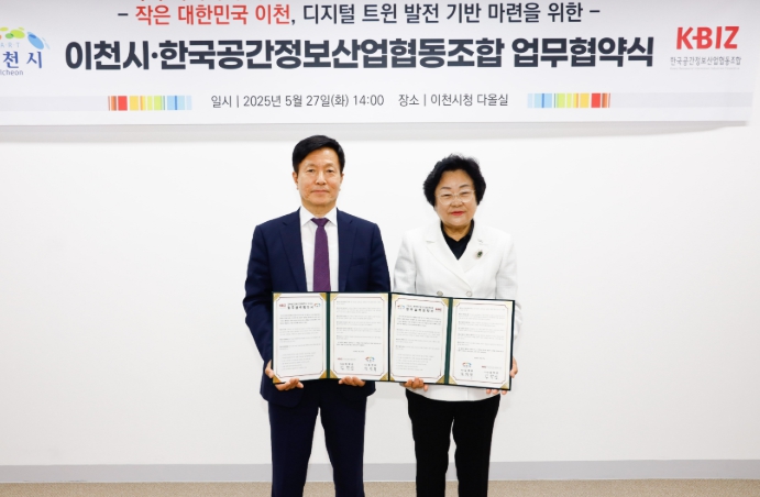 이천시와 협동조합은 협약을 통해 ▲이천시 행정 수요에 맞춘 공간정보 데이터 제공 및 분석 ▲디지털 트윈 기반 행정서비스의 공동 기획 및 운영 지원 ▲전문인력 양성과 상시 교육 프로그램 운영 등 디지털 전환 전반에 걸친 포괄적 협업을 추진하기로 합의했다.