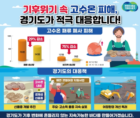 이에 경기도는 고수온 피해 대응을 위해 우럭조개, 새조개 등 고수온 내성이 강하고 경제성 있는 신품종 개발을 추진하고 있다. 특히 지난해에는 새조개 인공종자 생산기술을 개발해 새조개 1만 마리를 화성시 도리도 인근 해역에 방류했다.