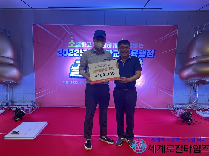 이번 교육 행정 골든벨 대회 1등은 여수종고중학교 장효찬 주무관이, 2등은 진도고등학교 김향미 주무관이 차지했다.
