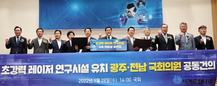 [세계로컬타임즈 김명진 기자] 전라남도는 28일 국회 의원회관에서 초강력 레이저 연구시설 구축 타당성 토론회를 개최해 시설의 국가적 필요성과 그 구축 방향을 논의하고, 광주.전남 국회의원들이 공동건의문을 통해 전남 구축을 촉구했다고 밝혔다.