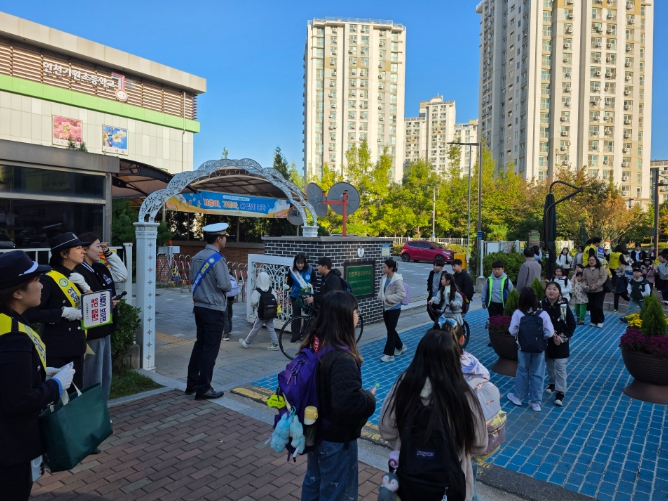 세계로컬타임즈 - 인천서부교육지원청, 가원초 등굣길 ‘6개 기관 합동 안전·존중 문화 캠페인’ 실시