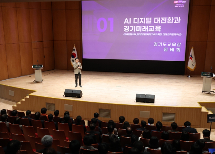 주요 순서는 ▲인공지능(AI) 디지털 대전환과 경기미래교육 주제 발표(교육의 본질회복, 경기미래교육의 지속과 확장, 미래조직문화 혁신) ▲인공지능(AI) 전환 시대에 따른 교육정책 방향 제시 ▲경기교육 디지털 플랫폼 ‘지원이(G-ONE)’ 안내 등으로 진행했다.