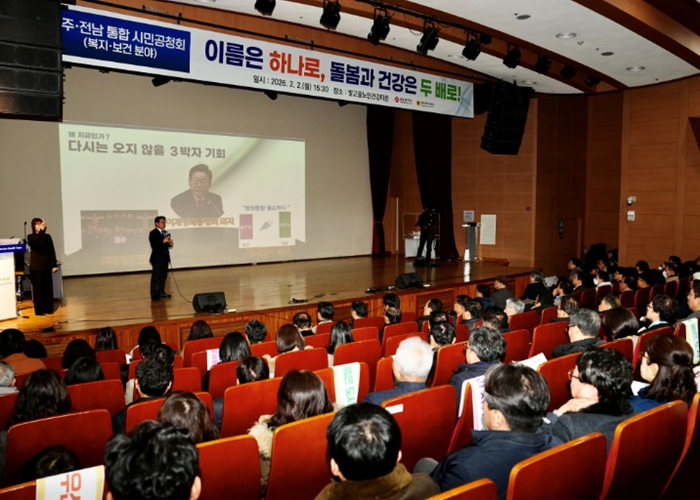 강기정 시장은 “광주전남 통합은 단순히 행정구역을 합치는 것이 아니라 시민의 삶의 질을 바꾸는 선택”이라며 “특별법 특례 조항을 통해 통합 이후 국가의 행정·재정적 권한을 이양받아 돌봄과 의료의 책임을 제도적으로 강화하겠다”고 강조했다.