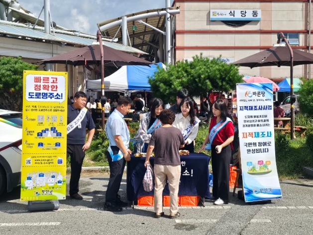 이번 합동 홍보에서는 주민들의 일상생활과 밀접한 관련이 있는 지적재조사사업과 도로명주소에 대하여 보다 많은 사람들이 쉽게 이해하고 접할 수 있도록 홍보 리플렛과 홍보물을 배부했다.