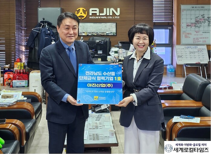 [세계로컬타임즈 김명진 기자] 전라남도는 15일 수산물 소비 위축과 이에 따른 어업인 위기를 해소하기 위해 새 판로개척 일환으로 현대자동차 부품업체인 경북의 아진산업(주)을 ‘전남도 수산물 단체급식 협력기업’으로 첫 지정했다고 밝혔다.