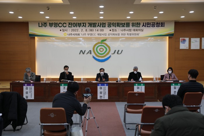 [세계로컬타임즈 강석운 기자] 나주시의회(의장 김영덕)는 8일 시청 대회의실에서 ‘나주부영CC 개발사업 공익확보를 위한 특별위원회’ 주관, 시민 공청회를 개최했다.