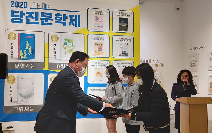 이날 행사는 지난 6월 공모했던 청소년문학상도 시상했다. 수상자는 시부문 '엄마의 빈자리'를 제출한 호서중 2학년 공채원 학생이 대상을 차지했다. 최우수상과 은상등 모두 21명의 학생들에게 시상했다.