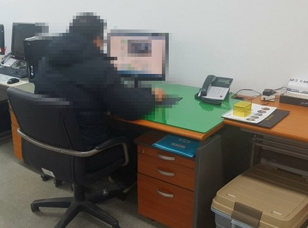 | ▲ 부당해고를 당해 지난해 12월8일 복직한 A씨가 경기도장애인체육회 사무실에서 컴퓨터만 보면서 일과를 보내고 있다. |