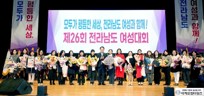 [세계로컬타임즈 김명진 기자] 전라남도는 15일 도청 김대중강당에서 김영록 도지사, 서동욱 전남도의회의장, 도의원 등 1천여 명이 참석한 가운데 ‘제26회 전라남도 여성대회’가 열려 여성의 무궁한 잠재력 개발에 앞장설 것을 다짐했다고 밝혔다.