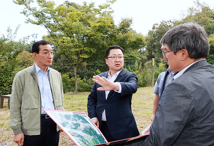[세계로컬타임즈 민순혜 기자] 이장우 대전시장은 16일 오후 김광신 중구청장, 박영철 공원녹지과장, 장병서 공원관리사업소장 등과 함께 자연휴양림, 숲길 등 산림휴양시설 조성 대상지에 대한 현장방문을 실시했다.
