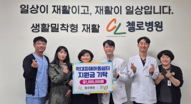 기영진 첼로병원 대표원장은 “학대피해를 겪은 아이들이 따뜻한 돌봄 속에서 하루빨리 안정과 희망을 찾을 수 있기를 바라는 마음으로 후원을 결정했다”며 “앞으로도 학대피해아동쉼터에 의료지원 등 적극적으로 도움을 제공하겠다”고 말했다.