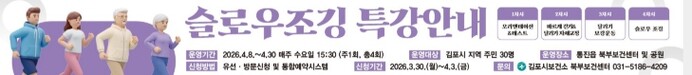 참여 신청은 4월 3일까지 유선·방문 또는 김포시 통합예약사이트에서 가능하며, 문의는 김포시보건소 북부보건센터 건강생활팀으로 하면 된다.
