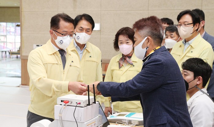 문금주 권한대행은 투표 운용장비, 기표대, 장애인투표 편의시설, 코로나19 방역관리 등 사전투표소 설치상황을 살펴보고 모의 사전투표에 직접 참여해 투표용지 출력, 유권자 이동동선 등 일련의 투표 과정이 정상적으로 진행되는지 점검했다.